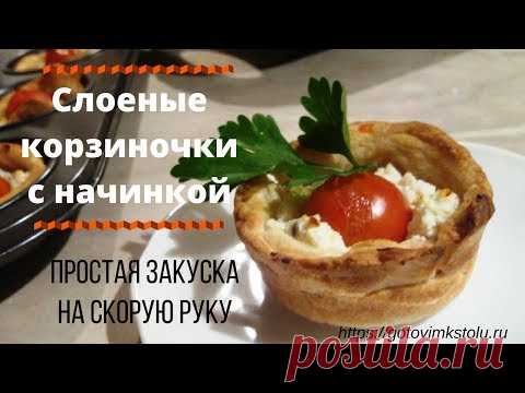 Простая закуска на скорую руку. Слоеные корзиночки с начинкой