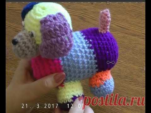 Игрушка СОБАЧКА крючком из разноцветных остатков пряжи