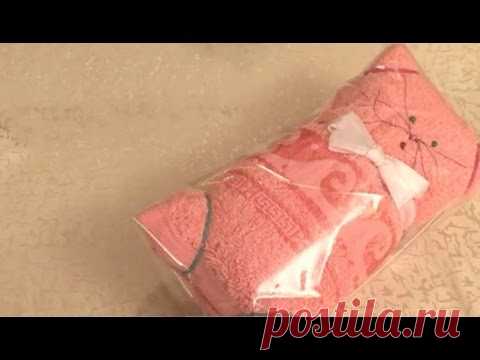 Полотенце в подарок. Кошка из полотенца - YouTube
