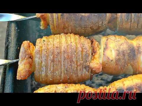 ШАШЛЫК ИЗ КАРТОШКИ/ РЕЦЕПТ БОМБА /КАРТОШКА С САЛОМ НА МАНГАЛЕ!