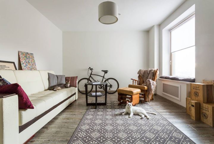 Квартира в московском районе Хорошево-Мневники подверглась радикальной перестройке сразу же после покупки. Ее жизнерадостная хозяйка решила не усердствовать с дизайном, а положиться на красивый естественный свет и минимализм в интерьере. Предметы, привезенные из семейного дома в Нарьян-Маре, подарки от друзей и ласковая кошка создают характер квартиры и уютную атмосферу. Посмотрите все фото проекта: