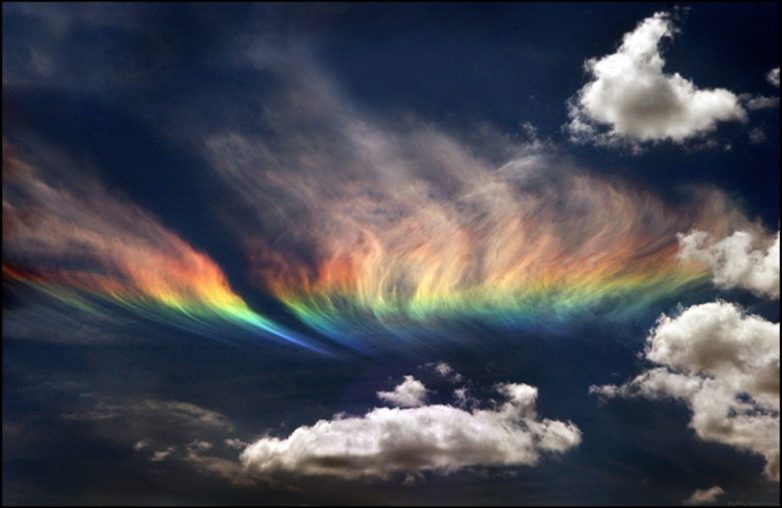 Огненная (или округло-горизонтальная) радуга появляется, когда солнце стоит высоко в небе, а в перистых облаках находится достаточно много плоских, расположенных горизонтально шестиугольных кристаллов льда. Кроме того, необходимым условием возникновения этого редчайшего феномена является широта (чем ближе к северу, тем меньше шансов увидеть огненную радугу) и морозная погода.