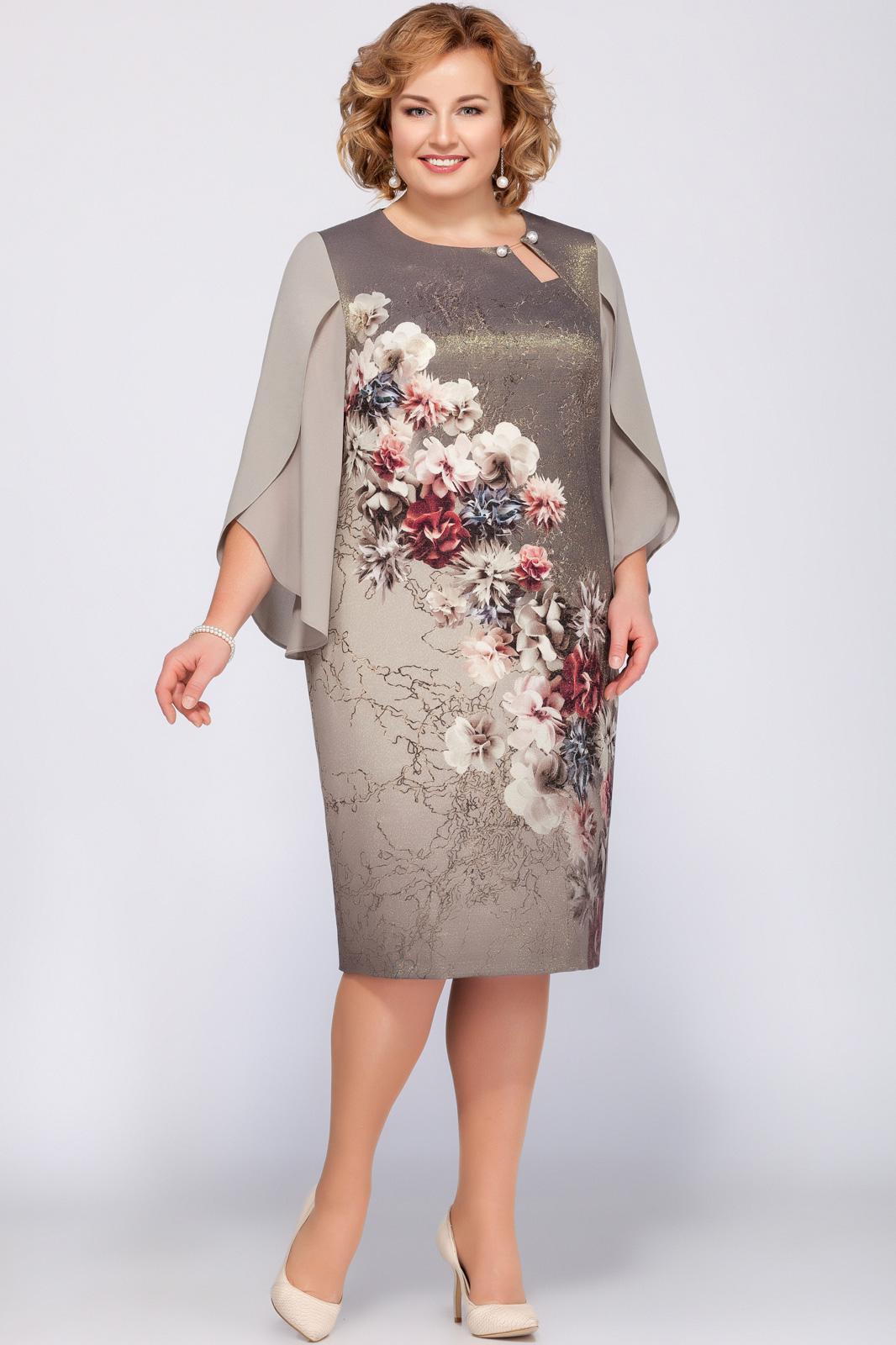 Платье LaKona, беж (модель 1090) — Белорусский трикотаж в интернет-магазине «Швейная традиция» Нарядное платье средней длины полуприлегающего силуэта. Выполнено из ткани с богатым цветочным принтом с люрексовой нитью, придающей легкий блеск. С левой стороны у горловины - слезка, декорирована булавкой с жемчужными бусинами. По спинке застежка молния, снизу разрез. Расширенные рукава состоят из двух деталей, выполненных из полупрозрачного шифона. Длина нижней детали рукава ...
