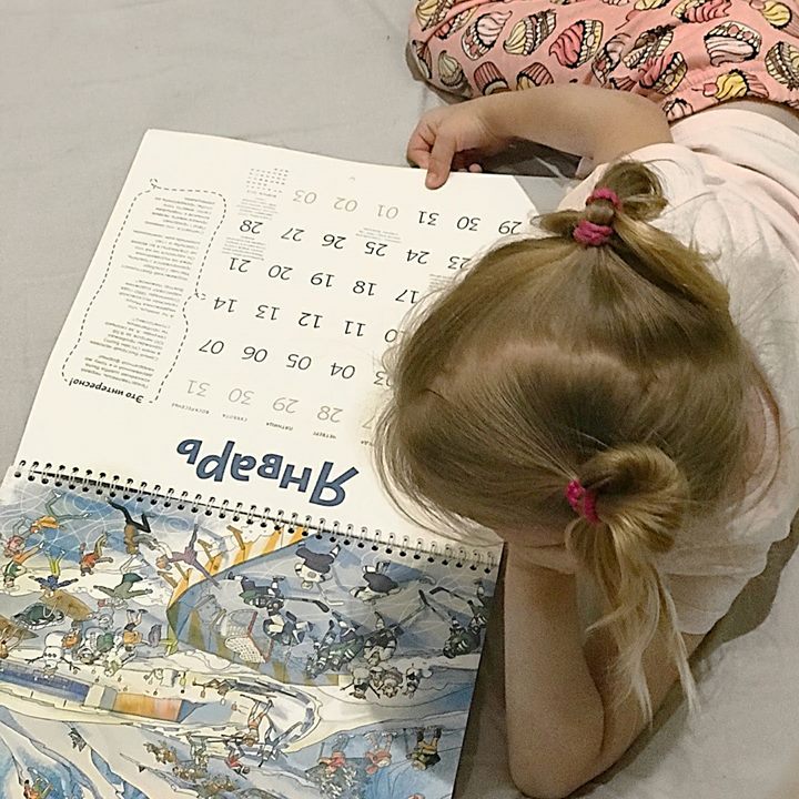"Вешаете ли вы на стену календари? Или все у вас в телефоне?! Мы каждый год вешаем календарь издательства @mifdetstvo 👌 в этом году он называется «12 месяцев с Чевостиком»🙂 Каждый месяц - новая интересная тема👌 Каждый разворот сделан в виде Лериного любимого виммельбуха, где нужно отыскать спрятанные детали (в конце календаря есть ответы)🙂 Невероятно красивые иллюстрации Анастасии Балатёнышевой🙂 Так же на каждом развороте написано про спортивные события, народные приметы, покорение…