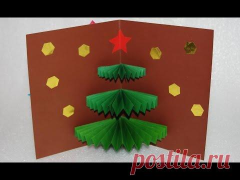 Елка. Новогодняя 3Д открытка своими руками. Поделки из бумаги с детьми на новый год 2018.