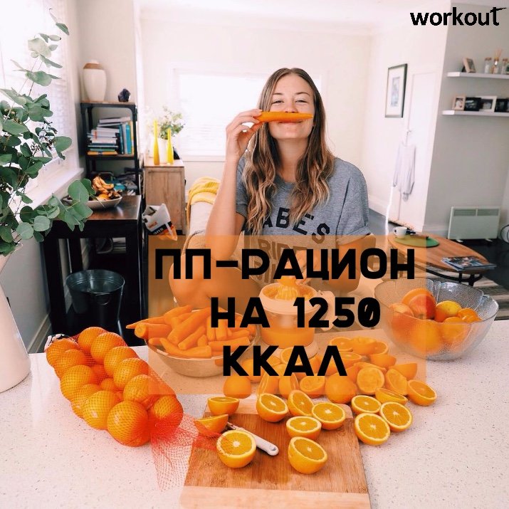2 ПП-рациона на 1250 ккал Вариант 1 Завтрак 1: кусочек цельнозернового хлеба с сыром, салат из моркови и сельдерея (150 г), заправленный соком лимона и любым растительным маслом, 60-80 г вареной куриной грудки. Завтрак 2: зеленый чай с чайной ложкой меда, яблоко или банан. Обед: 150 г печеного картофеля (заправляем столовой ложкой масла), 80 г отварного мяса, 150-200 г салата из капусты, зеленый чай. Полдник: 200 мл нежирного йогурта или кефира. Ужин: 200 г рыбы, пор...