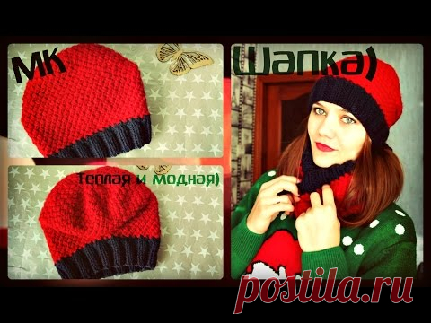 Вязаная шапка спицами!) Плотным теплым узором) МК!