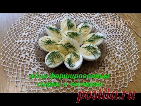 Яйца фаршированные сыром и чесноком. Eggs stuffed with cheese and garlic.