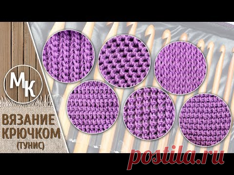 Тунисское вязание, начало. 6 узоров для начинающих. Учимся вязать тунисским крючком. МК.