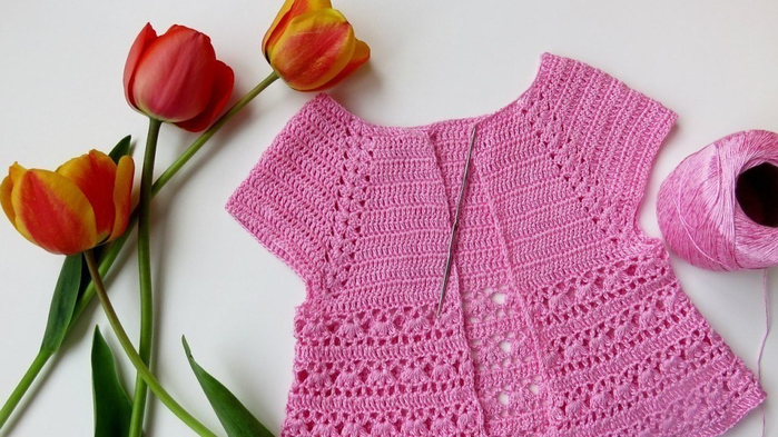 Красивая кофточка крючком. Возраст 1-2 годика Реглан сверху (Вязание крючком)