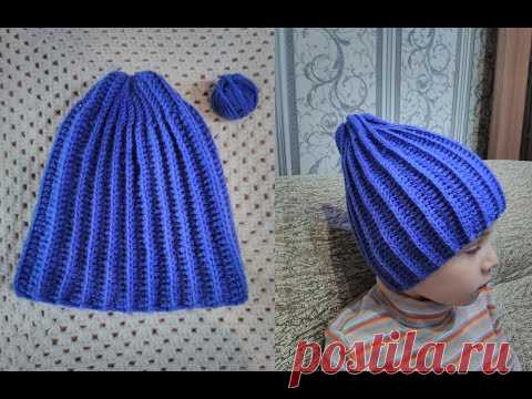 Как связать шапочку с удлиненной макушкой. Рельефное вязание крючком. - YouTube