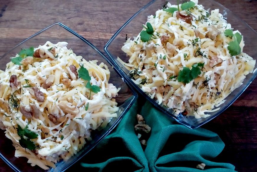 Праздничный салат с курицей, ананасами и грибами за 5 минут! |