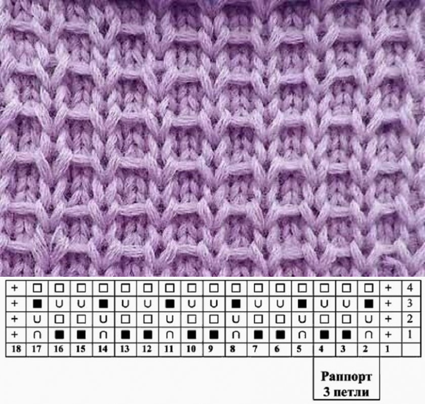Клетчатый узор с протяжками - Узоры и схемы спицами