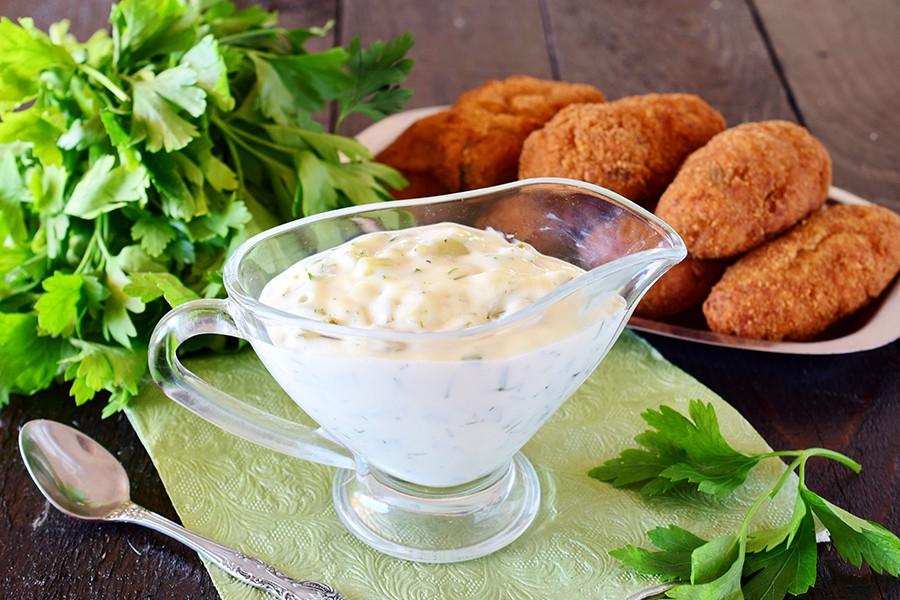 - Шаг 1: Как сделать соус к рыбным котлетам? Подготовьте для этого все необходимое. Идеальным вариантом сухих специи будут специи для рыбы. Обычно они продаются готовым набором.Шаг 2: Майонез выложите в небольшую мисочку и выжмите к нему немного лимонного сока. Затем подсыпьте соль, сахар и специи для рыбы. При добавлении соли ориентируйтесь на свой вкус, так как майонез сам по себе уже достаточно соленый.Шаг 3: Маринованные огурчики очень мелко нарежьте. Можно, конечно, и натереть их на терке, но в таком случает из них появится много сока и готовый соус станет более жидкий. измельченный огурцы добавьте в чашу к майонезу.Шаг 4: Несколько веточек укропа ополосните в проточной воде, обсушите и мелко нарежьте. Измельченный укроп, так же, добавьте в чашу к соусу.Шаг 5: Все ингредиенты тщательно перемешайте, чтобы они равномерно распределились между собой. Готовый соус рекомендую немного охладить перед подачей.Шаг 6: Выложите соус в соусник и дополните им рыбные котлеты. Все ингредиенты настолько гармоничны друг с другом, что более идеального соуса к рыбным котлетам просто не придумать! Приятного угощения!