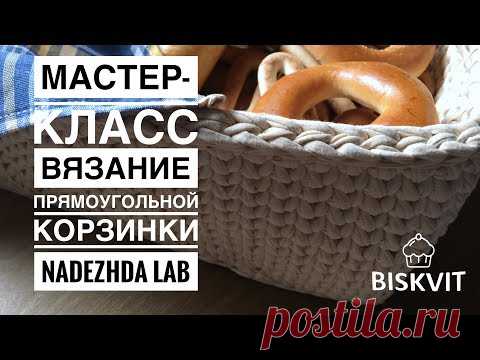 Прямоугольная корзинка крючком. Вязание из трикотажной пряжи