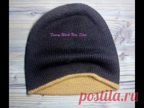 Двусторонняя мужская шапка спицами.