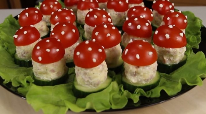 Оригинальная закуска украсит любой праздник: «Мухоморчики» на полянке
