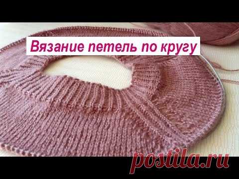 Вязание по кругу лицевыми простыми и скрещенными петлями Реглан сверху. Вязание резинки по кругу
