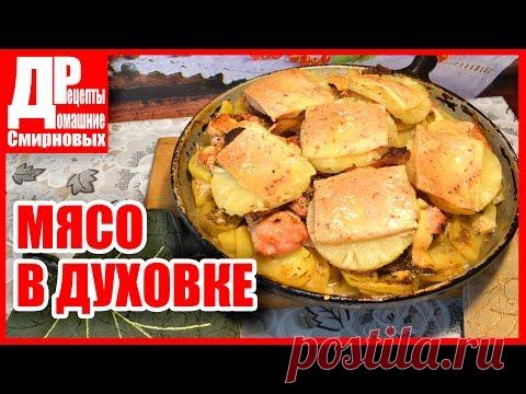 Свиные отбивные с гарниром и куриное филе под ананасами, в духовке! Очень вкусный обед!