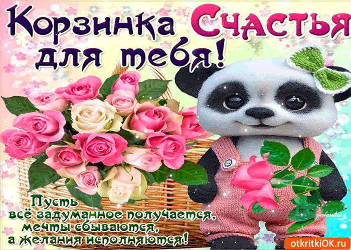 Корзинка счастья для тебя - Пусть все мечты сбываются - Бесплатные Открытки на otkritkiok.ru