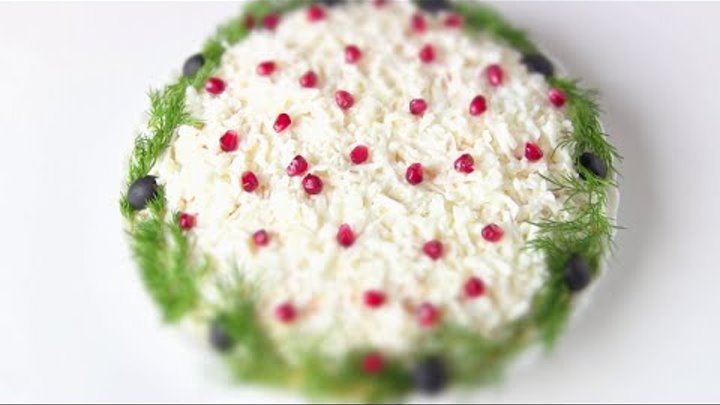Слоеный салат из отварной говядины с грибами «Зимняя сказка»