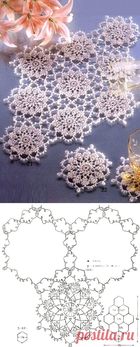 "Снежинка" - подстаканники и салфетка в зимнем настроении