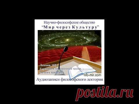 Научно-философское общество "Мир через Культуру" представляет вашему вниманию лекцию "Гармония внутренней жизни - основа здоровья".