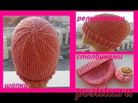 Двухсторонняя теплая шапочка рельефными столбиками ,how to crochet a hat(шапка № 104)