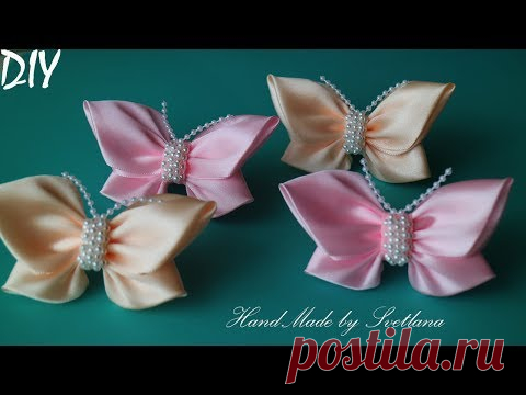 Бабочки из атласной ленты Бантики Канзаши для начинающих Satin ribbon bow Laco de fita