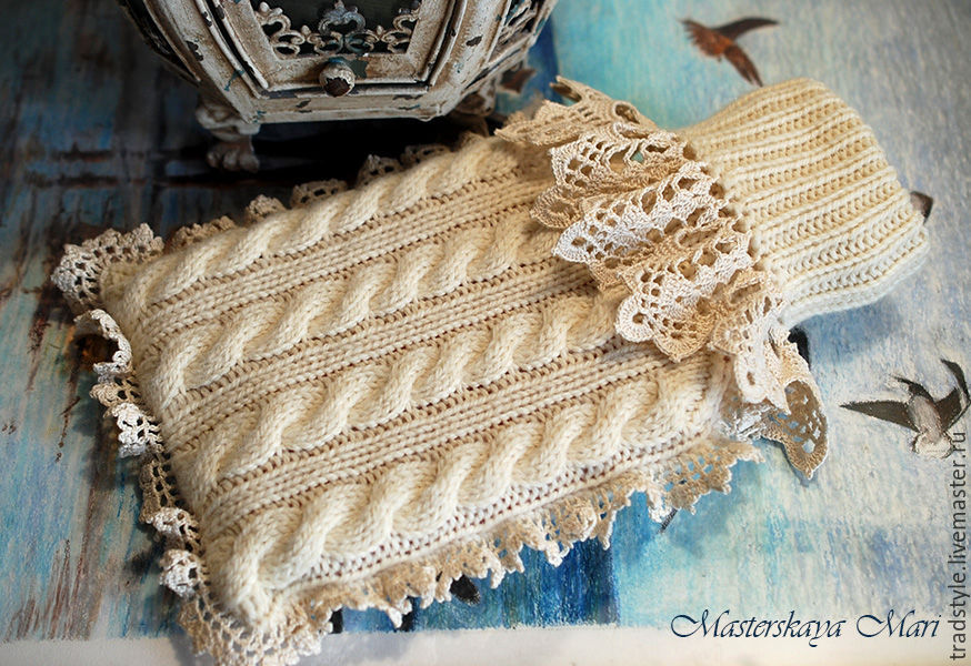 Бохо-грелка :)) Тёплый зимний аксессуар. Шерстяной чехол с кружавчикам – купить в интернет-магазине на Ярмарке Мастеров с доставкой