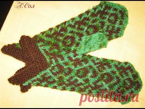 Варежки "Север" Ленивый жаккард, вяжем вместе