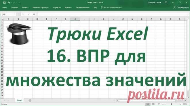 Трюк Excel 16. ВПР для множества значений В уроке рассмотрены два способа создания списка из всех значений, соответствующих указанному критерию (множественный ВПР). Первый способ – с помощью комбинац...