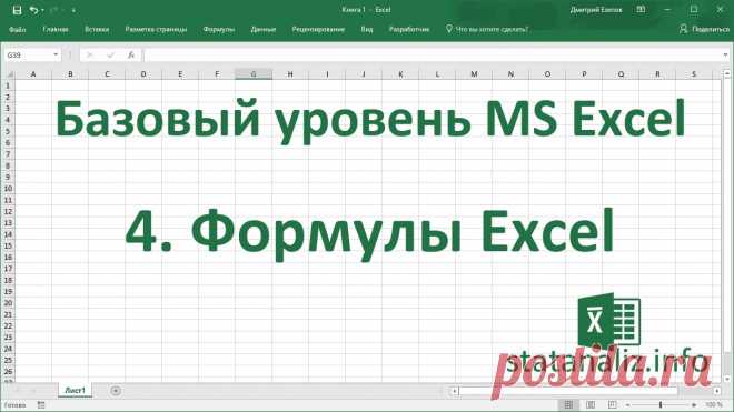 4 Формулы Excel Функции - основа Excel. С их помощью производятся самые различные вычисления: от простого суммирования до моделирования случайных выборок. В уроке рассмотрен...