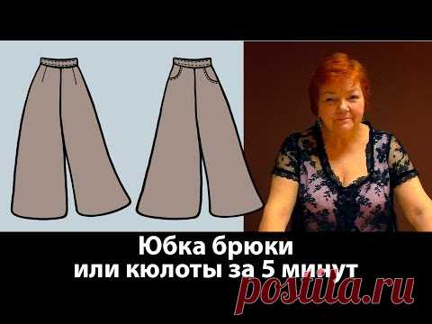 Юбка-брюки или кюлоты выкройка за 5 минут Как сшить брюки своими руками на базе выкройки прямой юбки