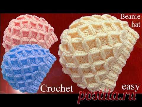 Gorro tejido en punto de rombos en relieve 3D a Crochet tallermanualperu