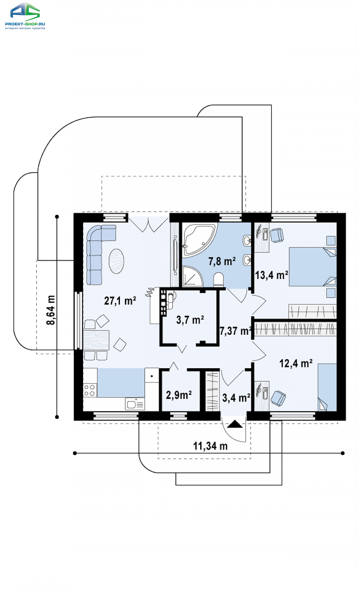 Проект z252: 1 этаж кирпич/блоки, площадь - 78 м2 | Готовые проекты домов - Proekt-shop