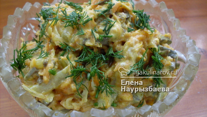 Классический салат "Обжорка" с печенью - рецепт с фото.