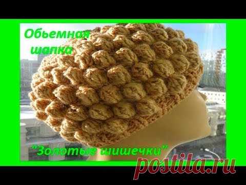 Обьемная шапка "Золотые шишечки" ,crochet hat ,(шапки № 106)