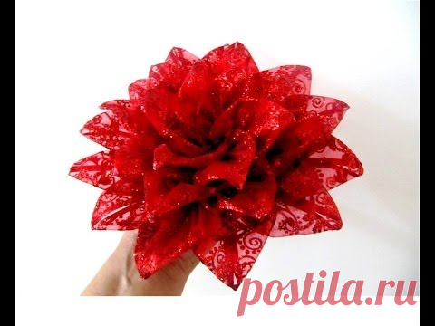 Moños flores nochebuena de navidad en cintas de organza brillante