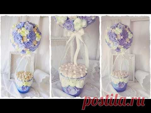 ТОПИАРИЙ из САЛФЕТОК с ЦВЕТАМИ и шариками сизаля — мастер-класс! Дерево счастья из роз от Тихоновой