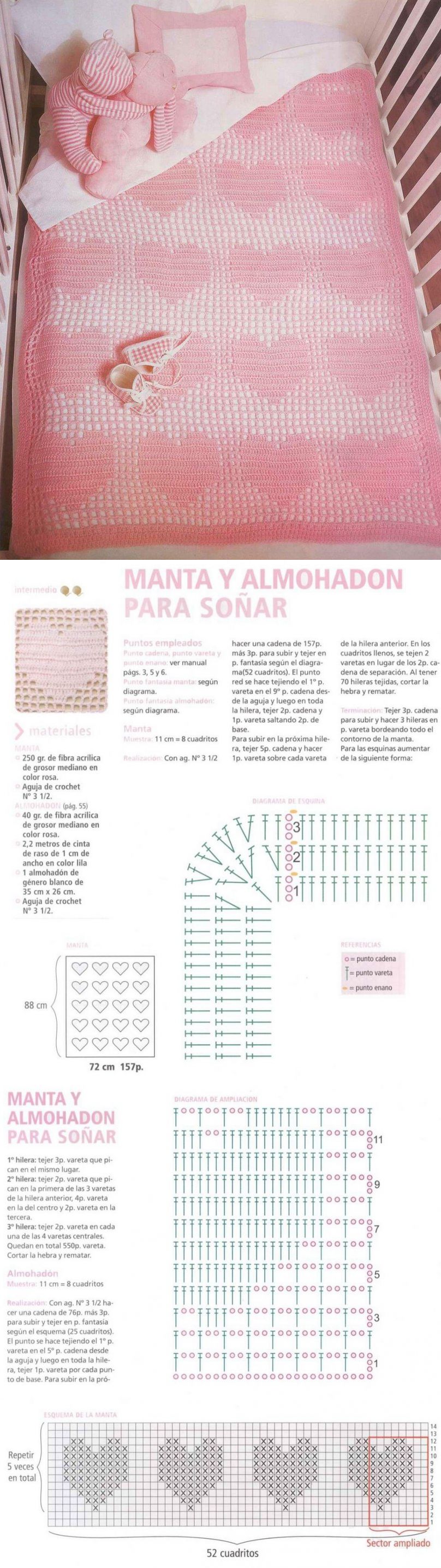 Покрывало крючком с сердечками..