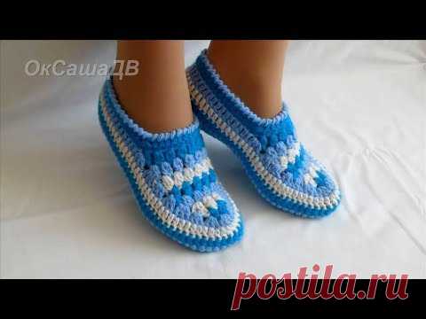 Тапочки - мокасины крючком. Slippers-moccasins crocheted.