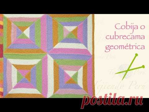 Cómo tejer una cobija o cubrecama con diseño geométrico en palitos o dos agujas