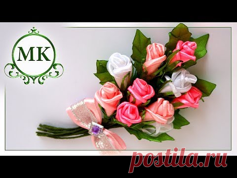 Брошь из лент. Розы. МК. Канзаши. / DIY. Kanzashi. Brooch made of ribbons. Roses.