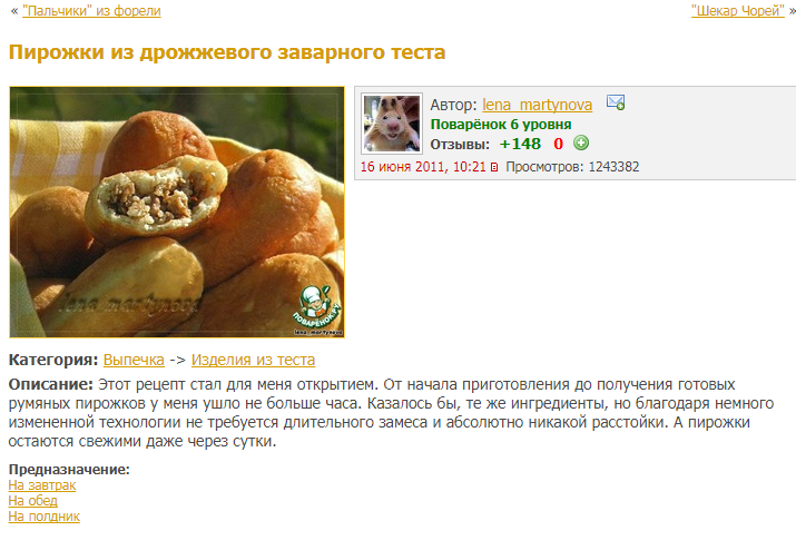 Пирожки из дрожжевого заварного теста - кулинарный рецепт