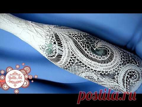 Декор бутылки. Зимний узор. Кружевная роспись. Пошагово