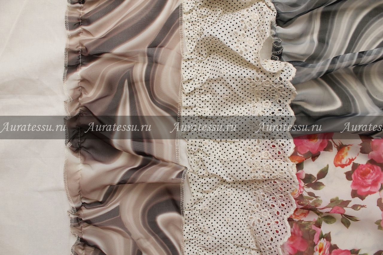 Auratessu – ткани для одежды на манекенах - интернет магазин в Санкт-Петербурге: Ткань для юбки, сарафана три разноцветных волана на основе белого цвета
