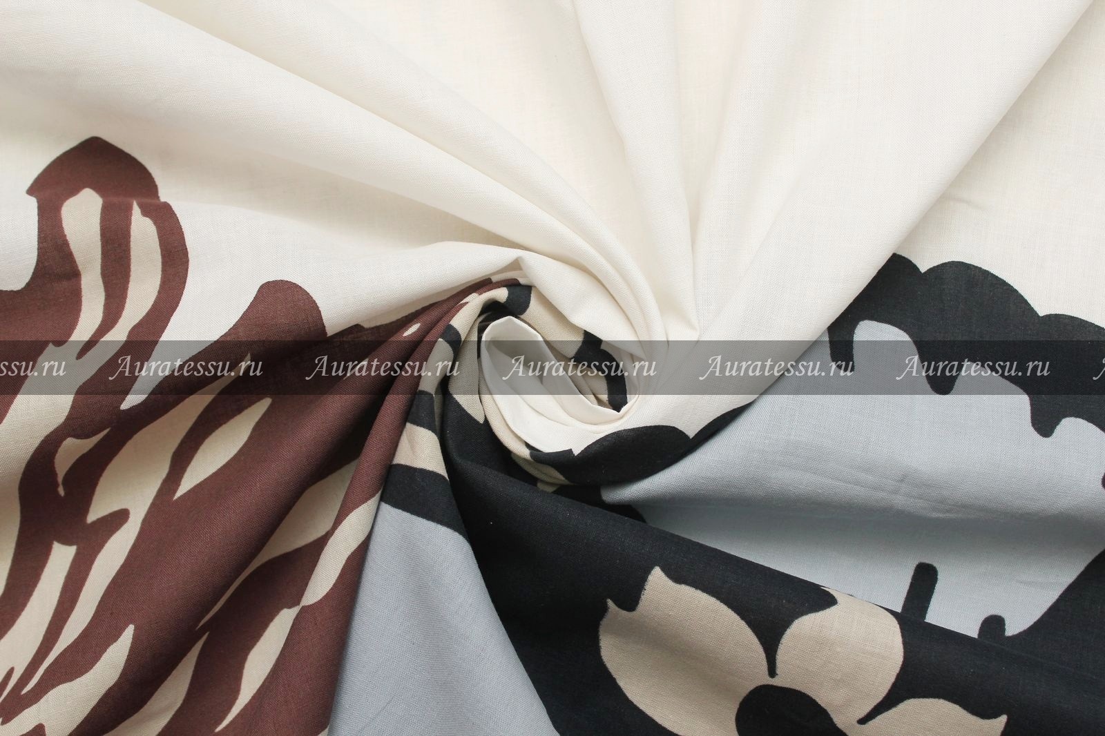 Auratessu – ткани для одежды на манекенах - интернет магазин в Санкт-Петербурге: Хлопок-батист с крупными чёрными и коричневыми цветами на белом фоне