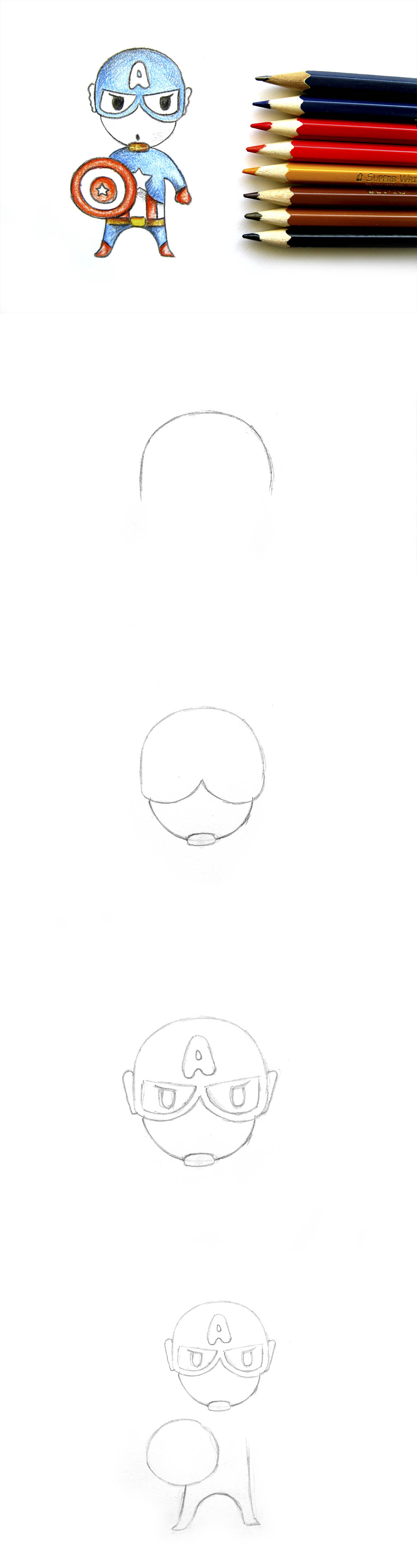 Капитан Америка рисунок в стиле чиби, учимся рисовать сами.