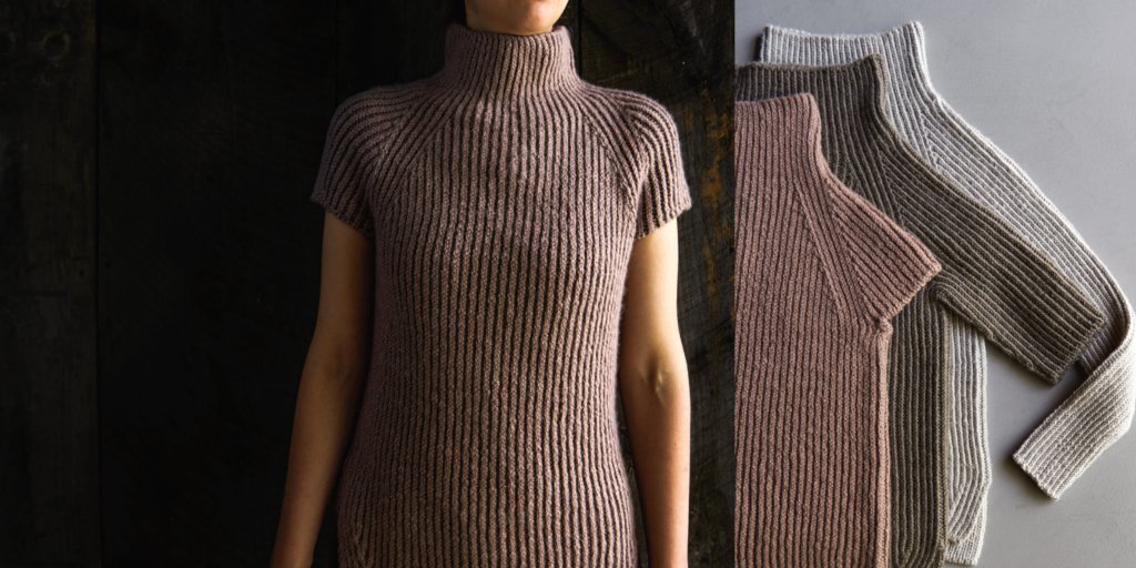 Свитер резинкой спицами Twisted rib Как связать спицами свитер резинкой с тремя вариантами рукавов по описанию от Purl Soho. Модель женского свитера реглан, вязанного скрещенной резинкой без швов спицами сверху вниз от ворота, с подъемом ростка укороченными рядами и тремя вариантами рукавов с подробным описанием и фото.